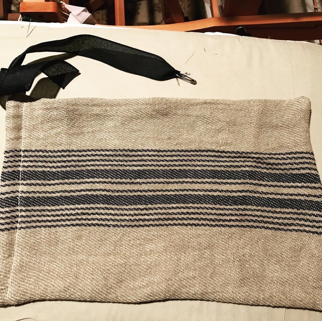 I was left with fabric the next morning that was quite light and bouncy–a bit unstable in the sense that it seemed to jump all over the place and was difficult to work with. This is partly because I used 16/2 linen (Bockens, color 0000) for the weft as well, which is smaller than the 8/1 tow linen the pattern recommends. Had I used the larger linen, this probably would have made the fabric a bit more supple and sturdy. I also wonder if the fabric would have been easier to work with had I constructed the bag before washing the fabric. This is a bit risky to do since you can’t entirely predict how the fabric will shrink or tighten up, but it might be worth a shot next time. (Also, maybe ironing would have helped with this??)